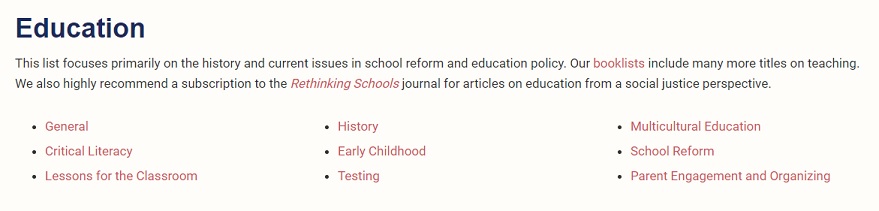 If you are a social justice-loving educator, we promise you are going to be excited when you see this next list. Social Justice Books has more than 50 carefully selected lists of multicultural and social justice books for children, young adults and some specifically to help educators develop their practice. Just under the topic of education, they have nine subtopics (see below), and the books include both classics like Pedagogy of the Oppressed by Paulo Freire and newer favorites like Innovative Voices in Education: Engaging Diverse Communities by Eileen Gale Kugler (editor). I’ve read both and believe they are required reading for social justice education leaders.