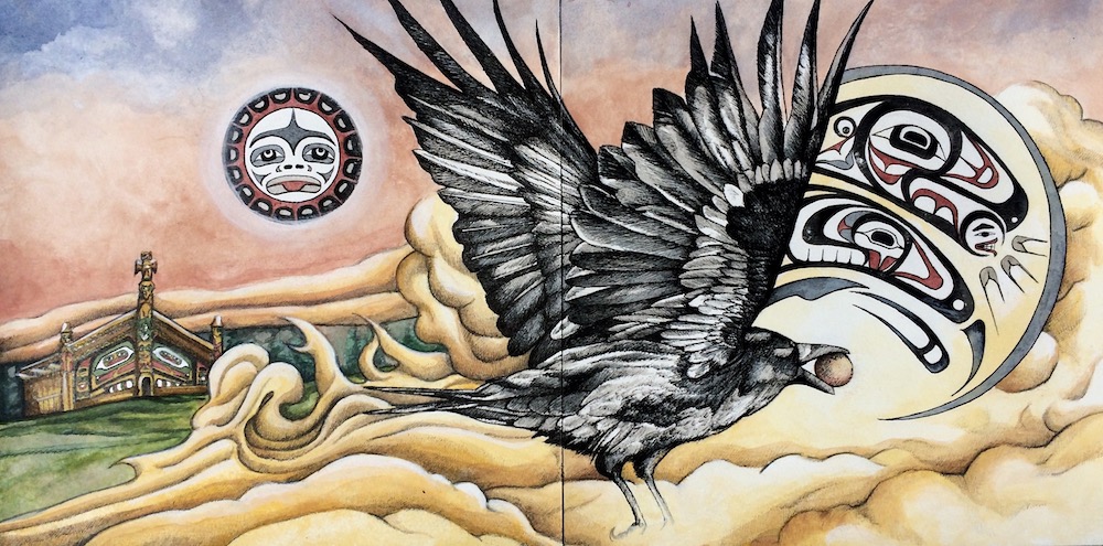 Illustrating the Raven Stories for Sealaska Heritage was a truly special point of my career. The books are part of a large collection of Native tales produced by Sealaska Heritage and sponsored by the Alaska Native Education Program grant from the U.S. Department of Education. These three stories, Raven Brings Us Fire, Origins of Rivers and Streams, and Raven and the Box of Daylight are ancient creation stories based on oral history of the Tlingit people of southeast Alaska and written by Tlingit author Pauline Kookesh Duncan. I received the completed stories, a few guidelines, and some cultural references and was set loose to envision the imagery of these densely woven tales. I was further challenged to learn the art of formline drawing—a traditional technique used by native people of the Pacific Northwest both on totem poles and in their artwork. The result was a weave of my detailed illustrations of characters and settings with formline. I valued deeply what I learned working firsthand with Tlingit people at Sealaska. To me, the books carry a potent essence of southeast Alaska and the people who have called it home for thousands of years, and are enchanting for children and adults alike! The public and educators can purchase the books for the classroom or personal use via the Sealaska Heritage online store.