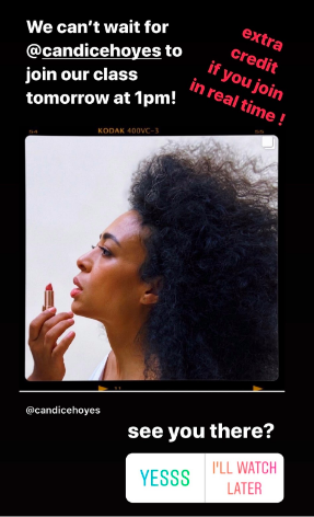I threw out my plan for the week, aside from an already scheduled special guest. With all the chaos and pain happening around us, I was thankful that my friend and recording artist Candice Hoyes was still game to talk to students about how to present and create their final projects.